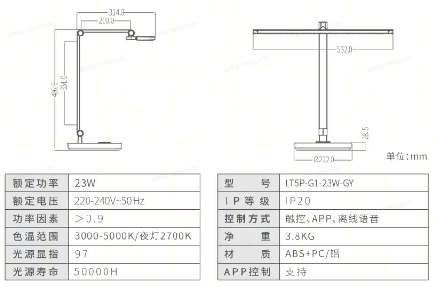 T5护眼台灯-灰色红光版采用35°前置偏光设计,,可将更多光线精准有效投射到桌面,,,孩子不会受到漫射的灯光刺激,,并采用教室灯同款专利棱晶板,,可直视防眩设计。。。不怕孩子坐着看灯罩,,灯罩使用厚实铝材加大散热面积,,,,保证光源温度最高不超过65℃,,,延长光源寿命,,,,更是>3125HZ豁免级无频闪,,T5护眼台灯好光,,更懂你。。